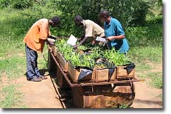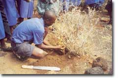 RAE also visits local schools to create environmental and health awareness, with RAE extension materials and tools such as the Kiswahili DVD 'Nyasi ni Pesa' ('improve your environment, increase your income') becoming increasingly important. In addition, RAE distributes tree seedlings, and is planting more and more school compounds with grass. As well as being an important teaching tool, grass fields have made it possible for some schools to keep improved cows and provide children with milk at lunch time. |