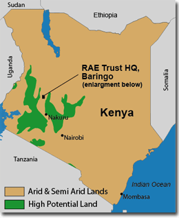 Map of Kenya: Dryland Areas and RAE Trust Headquarters